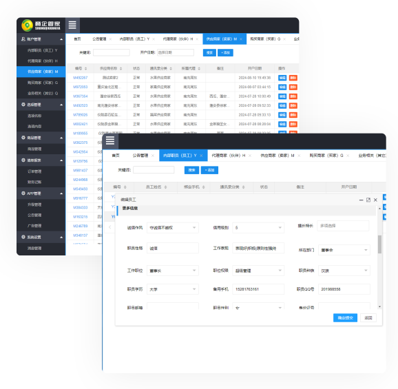 内部员工|代理商|供应商|购买商等业务相关角色管理